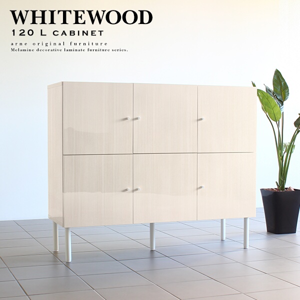 ■キャビネット 鏡面 おしゃれ サイドボード 幅120 ホワイトウッド モダン リビング 収納棚 棚 whitewood 120L cabi ☆