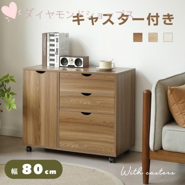 キャビネット 幅80 北欧 サイドボード チェスト キャスター付き 引き出し 3段 ワゴン タンス 扉付き 大容量 押入れ収納 棚 スリム テレビ台 リビング 収納棚 おしゃれ モダン