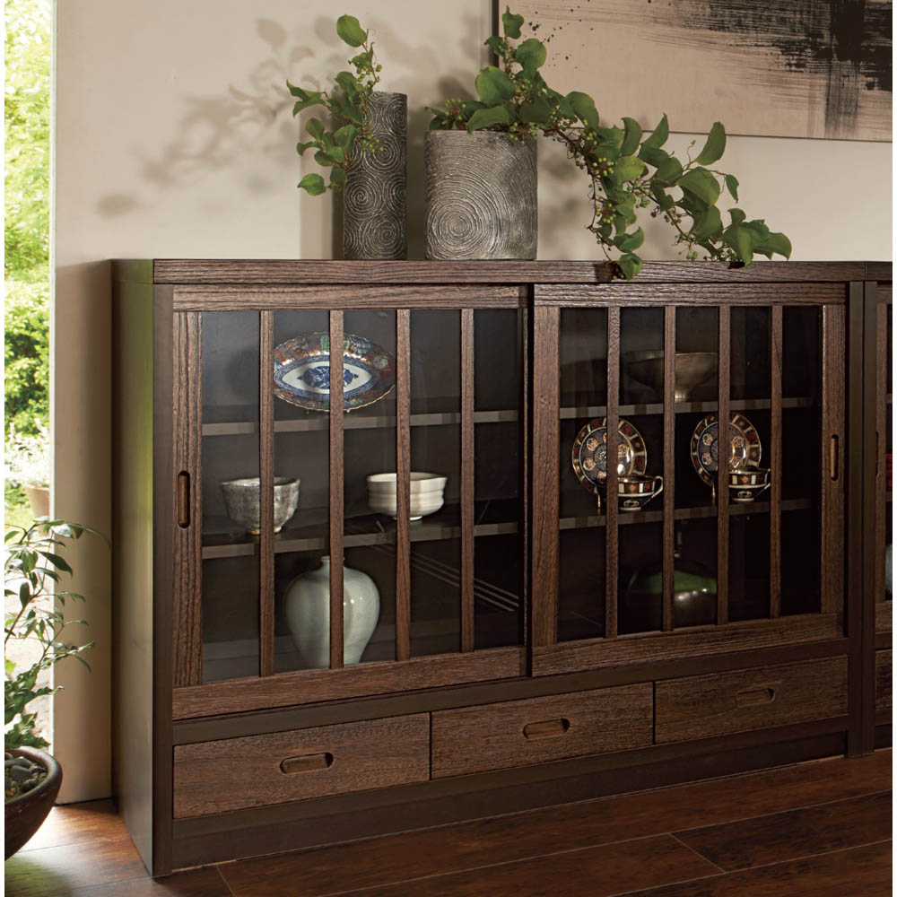 クルミ天然木の温もりとセラミック柄が織りなすモダンなたたずまい。フロート感のある洗練されたフォルムと、スリットが奏でるアーバンスタイル。■柔らかな天然木が織りなすコンテンポラリーデザイン引出しに配した細やかなスリット状にデザインした天然クルミ材。落ち着きのあるセラミック柄の天板でモダンリビング。オイル仕上げによって引き出された自然な木目は、上質な空間を演出します。■すっきりとしたデザイン台輪を後方に配置することで、軽やかな印象的なデザイン。圧迫感を感じさせない洗練された外観で、リビングに開放感をもたらします。■使いやすさを追求した収納設計3枚の扉内には可動棚板を設置し、サイズの異なる収納物にも柔軟に対応。使い勝手の良い引き出しには、小物類をすっきりと整理できます。天板は飾り棚としても活用でき、インテリアの幅が広がります。■品質へのこだわり日本の品質基準に基づいた企画で、信頼できる日系中国工場での製造。安定感のある頑丈な造りで、長くお使いいただける確かな品質を実現しています。
