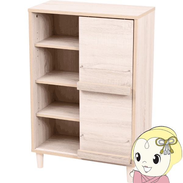 ■カラー:ナチュラル【NA】 ■サイズ [外寸]幅60×奥行29.5×高さ90(アジャスター80.5)cm [内寸] (オープン部)各幅56×奥行24.5×高さ37cm (可動棚)幅56×奥行25×厚み1.5cm(3.2cmピッチ5穴) (フラップ部1段目)幅24.5×奥行1.5×高さ35.5cm (フラップ部2段目)幅24.5×奥行1.5×高さ36cm ■素材 [本体]プリント紙化粧合板 [脚]天然木 ■耐荷重 [天板]約10kg以下 [フラップ扉]各約1.5kg以下 [可動棚]各約5kg以下 [扉内固定棚]各約5kg以下 ■備考 ・可動棚2枚 ・背面化粧なし ・脚裏フェルト付き ・アジャスター付き ■組立時間(目安)(大人2人) お客様組立(30分) ※お客様組立て品につきましては、組み立て後に不良の連絡をされても対応ができません。 組み立て前にパーツに不良・傷等がないか、必ずご確認下さいます様よろしくお願い申し上げます。 ※記載は商品仕様の一部です。仕様説明不足等の理由での返品はできません。特に適合等は必ずご確認ください。