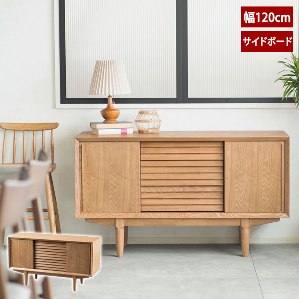 ■サイドボード(ナチュラル) 幅約120cm [完成品] 自然の風を感じる、幅広い収納力のサイドボード ナチュラルな雰囲気がお部屋に温かさを