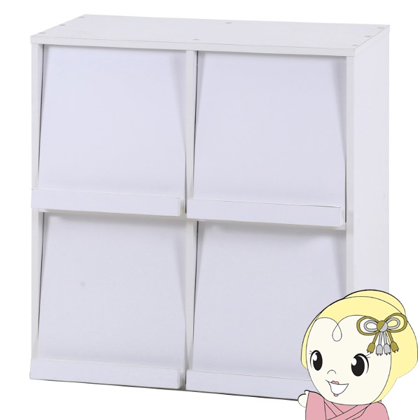■ディスプレイラック 本棚 幅80×奥行46.5×高さ85cm ホワイト 4マス フラップ扉 サイドボード マガジンラック 不二貿易