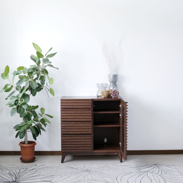 ■サイドボード 約幅80×奥行42.5×高さ84cm ブラウン ルーバー 脚付き リビングボード ダイニング インテリア家具 茶 送料無料
