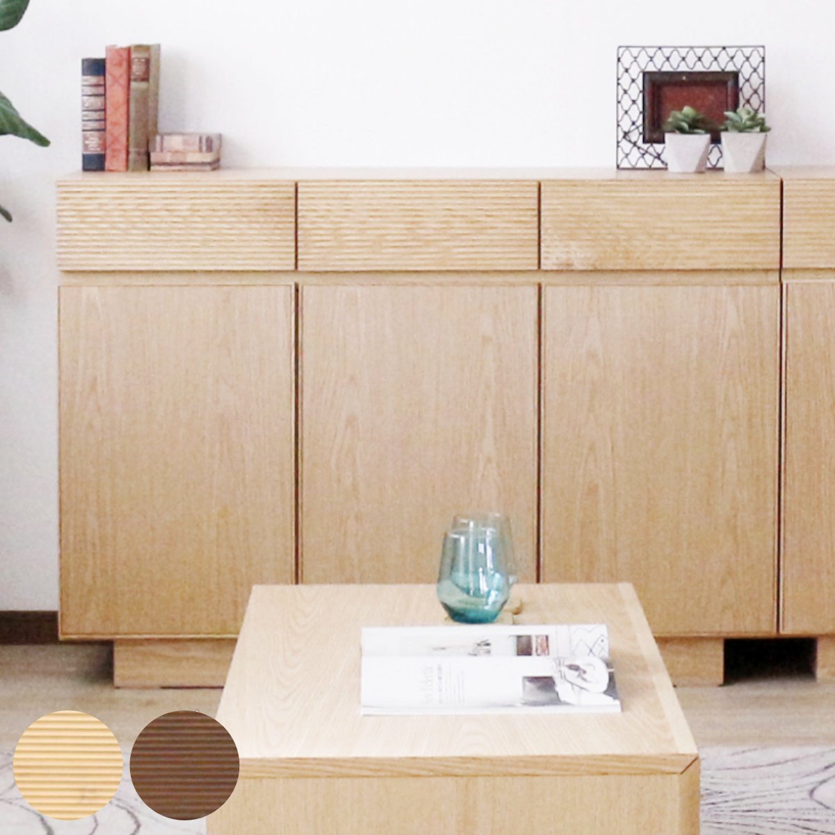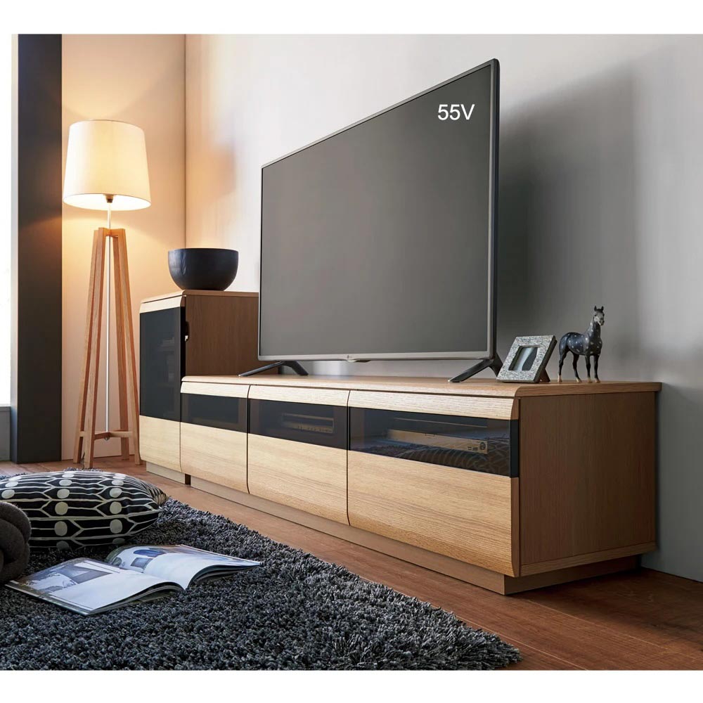 丸みを帯びた美しいフォルムと、オーク材の端正な木目が調和し、美しく確かな存在感を醸しだすテレビ台シリーズ。高級感のあるアールデザインで、デザイナーズマンションのような垢抜けた空間へ。