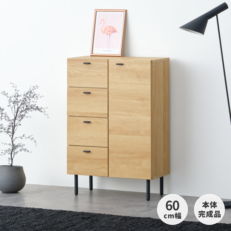 チェスト リビングチェスト タンス キャビネット 収納 おしゃれ 幅60 高さ88 シンプル スリム 引出し 4段 開き戸 棚板可動 棚板2枚 高さ調整可能 配線孔 壁面収納