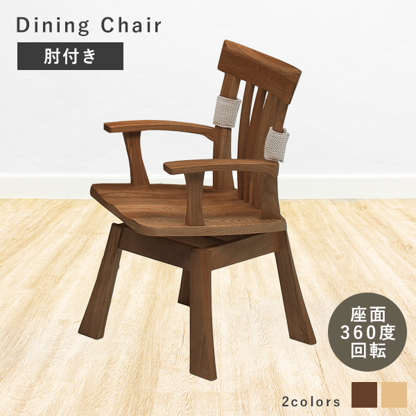 ■ダイニングチェア 回転チェア 肘掛け付き 木製 木目 天然木 タモ材 チェア単品 360度回転 ダイニング チェア 椅子 カントリー調
