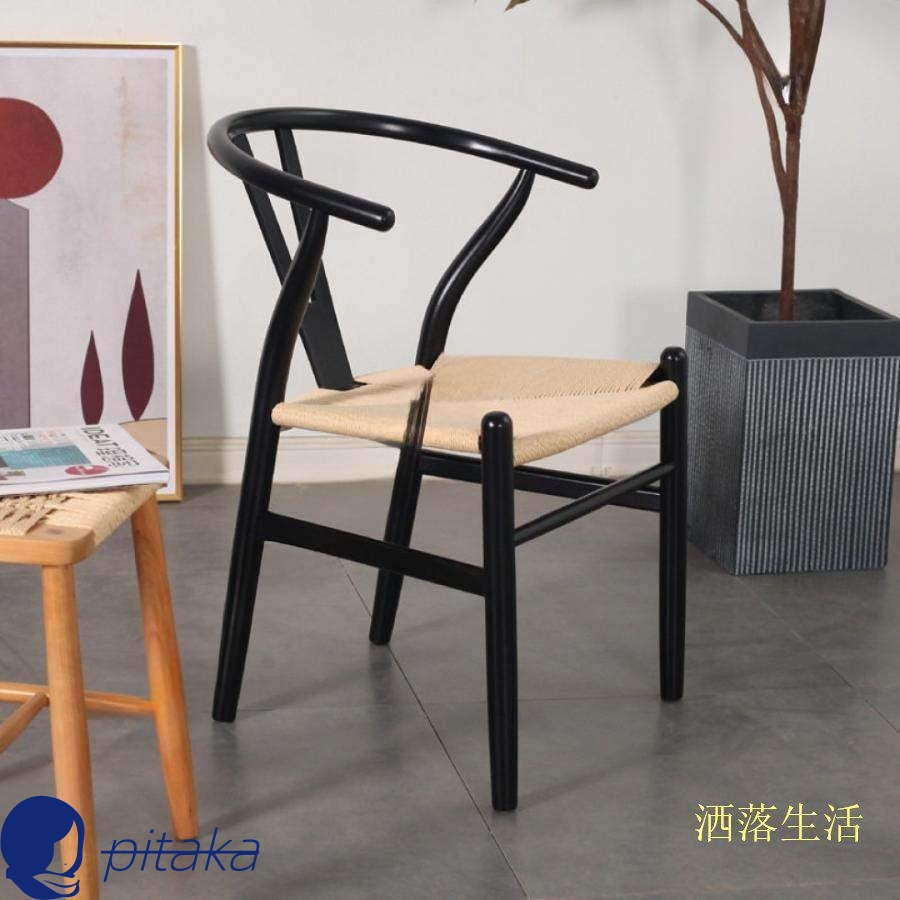 ■ダイニング チェア 木製 ソリッドウッドダイニング椅子 叉骨背もたれ 手作りの紙ロープ織り Yチェア 株式会社錦無垢材チェア ラタンチェ
