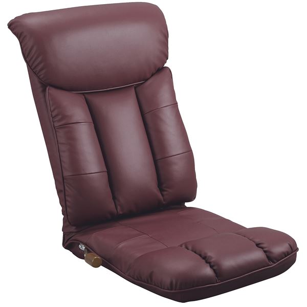 ■スーパーソフトレザー座椅子 〔彩〕 コンパクト仕様 13段リクライニング/ハイバック 日本製 ワインレッド(赤) 〔完成品〕 【北海道・沖縄
