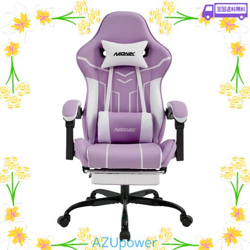 ■NIONIK ゲーミングチェア オットマン付き 幅広座面 オフェスチェア 連動ひじ掛け ハイバック GAMING CHAIR ゲーム用 チェア 多機能 135°