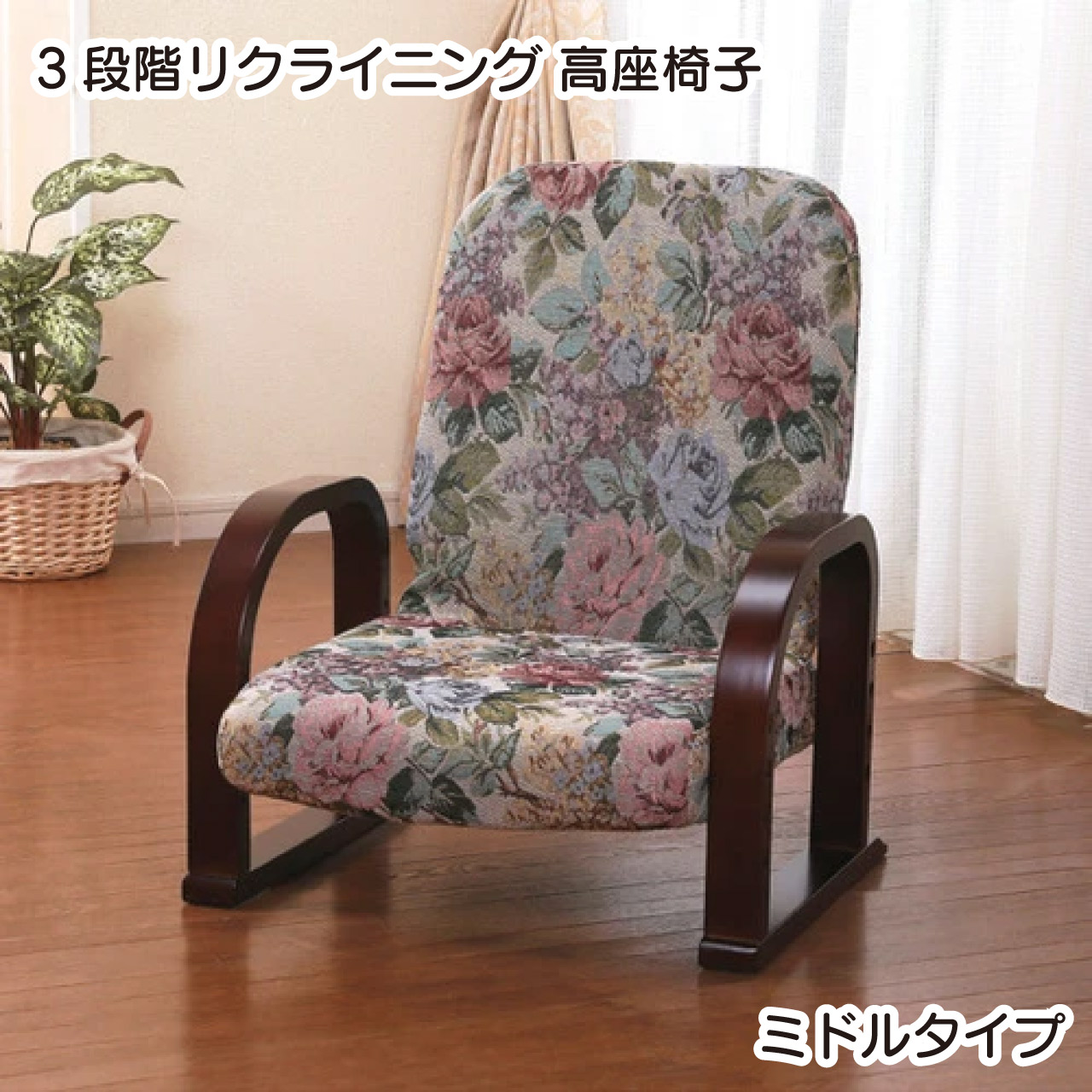 ■高さが調節できる 高座椅子 ハイバック 肘付き ミドルタイプ ひざ 腰 負担緩和 立ち座り ラクラク 背もたれ付き 肘掛け付き 腰掛け椅子