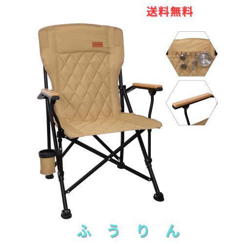 ■KingCamp アウトドア チェア 折りたたみ キャンプ 椅子 コットン入り アームチェア 木製手すり ハイバック 収納用フック付き 耐荷重136kg