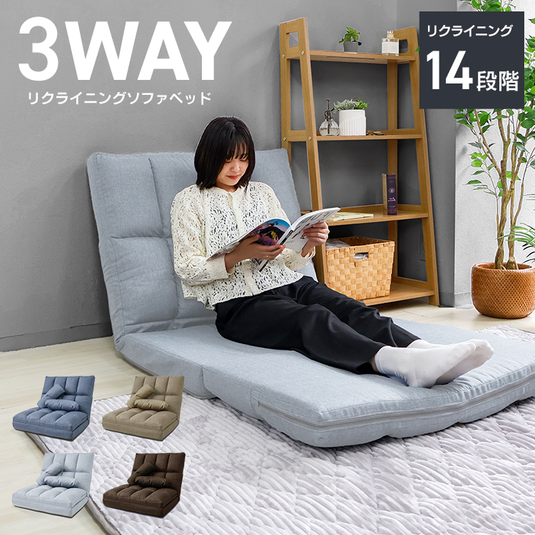■ソファーベッド 3WAY 幅90 ソファベッド カウチ ハイバック 新商品 クッション付き リクライニング ローソファー 日本製ギア おしゃれ 折