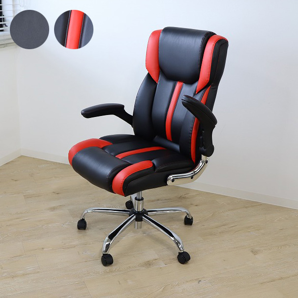 【特長】10cmの厚みがあるクッション性抜群の座面はまるで高級車のような座り心地で長時間のプレイも快適に。ロッキング機能付きだからゲームプレイ中も、休憩中も、身体を優しくサポート。跳ね上げ式のアームレストは座面と同じ素材でクッション性抜群。肘への負担を軽減してプレイ中も休憩中にも大活躍。 高級感溢れるデザインと便利な機能で最高のプレイ体験を実現。【商品名】ゲーミングチェア BLAZE2(ブレイズ2)【サイズ】商品サイズ:幅73×奥行74×高さ106〜114cm座面高:46〜54cm【重量】14.5kg【材質】背もたれ:積層合板、チップウレタン、スラブウレタン、表面PVC座面:積層合板、コイルスプリング、チップウレタン、スラブウレタン、表面PVCアームレスト:PP、ABS、スラブウレタン、PVC座面下金物:スチール(粉体塗装)ガスシリンダー:スチールシリンダーカバー:PP脚(ベース):スチールメッキキャスター:ナイロン【その他】お客様組立の商品(新品)