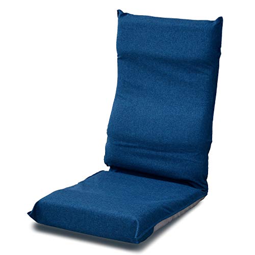 ■[山善] 座椅子 コンパクト (幅43*) リクライニング ハイバック 折りたたみ お尻がズレにくい 背もたれカーブ (腰サポート) ネイビー IHZ-