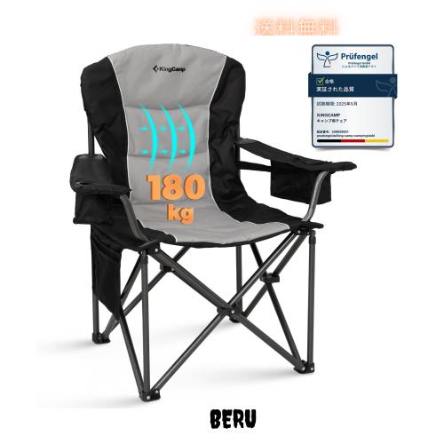 ■KingCamp キャンプ チェア ハイバック 腰を支える構造 幅96cm 頑丈 耐荷重180kg コットン入り 保冷バック付き 折りたたみ椅子 アウトドア