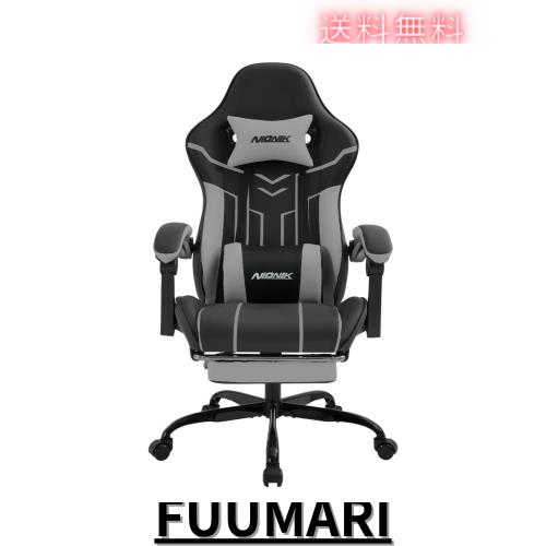 ■NIONIK ゲーミングチェア オットマン付き 幅広座面 オフェスチェア 連動ひじ掛け ハイバック gaming chair ゲーム用 チェア 多機能 135°