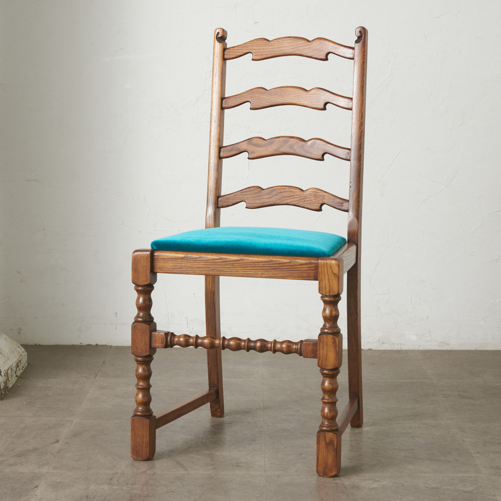 ■張替済 英国 アンティーク ラダーバック チェア 椅子 ハイバック ダイニングチェア 木製 オーク クラシック 年代物 イギリス 89193