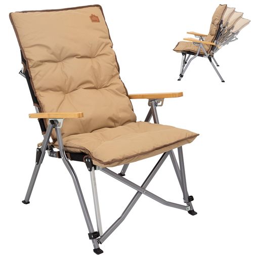 ■KingCamp アウトドア チェア ハイバック キャンプ 椅子 4段階調整 ふかふか脱着クッション 軽量アルミフレーム 竹製手すり 耐荷重120kg