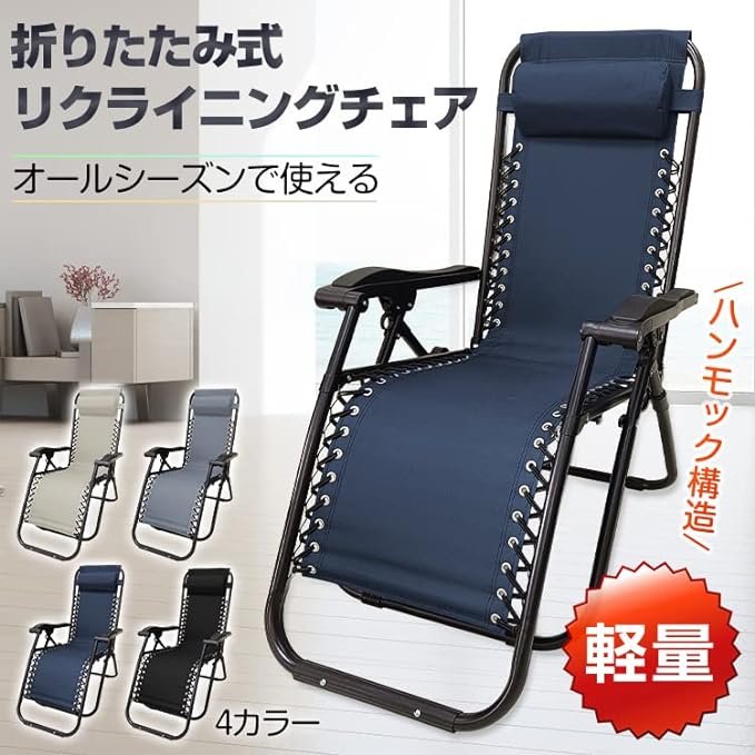 アウトドアチェア サマーベッド 折りたたみ リクライニング チェア ハイバック ベッド フルフラット イス 椅子 キャンプ アウトドア デッキチェア
