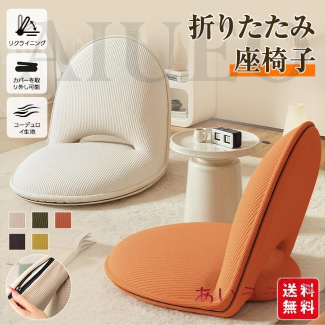 ■座椅子 背もたれ チェア フロアチェア 5段調整可能 折り畳み リビングチェア 一人掛け コーデュロイ 北欧風 低反発 ハイバック インテリ