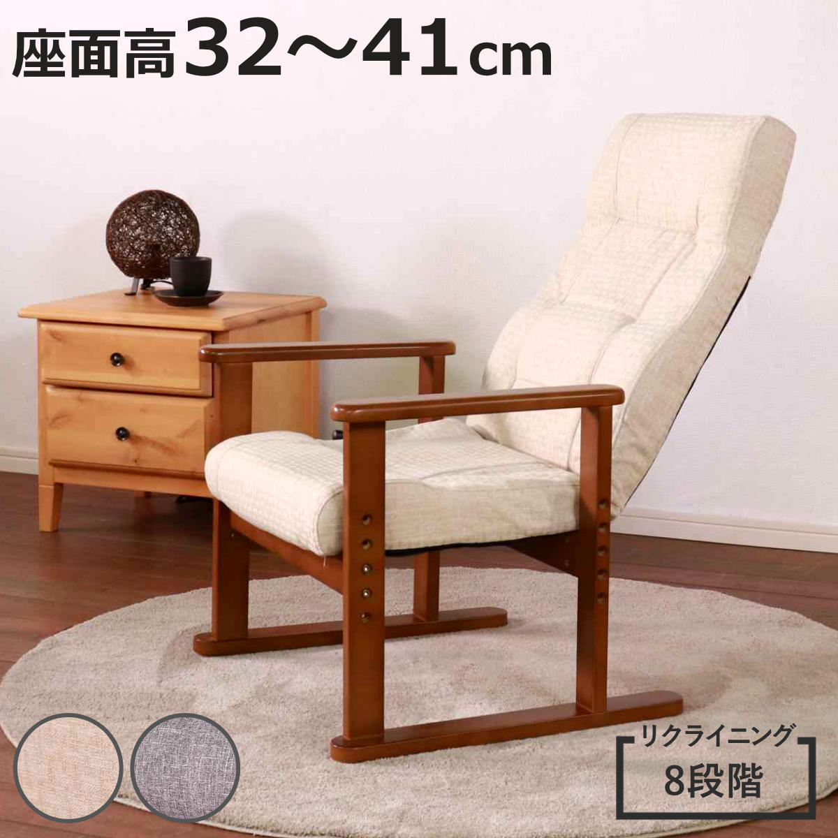 ■高座椅子 座面高32〜41cm 8段階リクライニング ハイタイプ 高さ調節可能 高齢者 ( チェア 椅子 ソファ 1人掛け 高さ調節 ハイバック リ