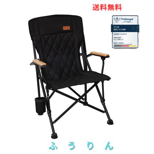 ■KingCamp アウトドア チェア 折りたたみ キャンプ 椅子 コットン入り アームチェア 木製手すり ハイバック 収納用フック付き 耐荷重136kg