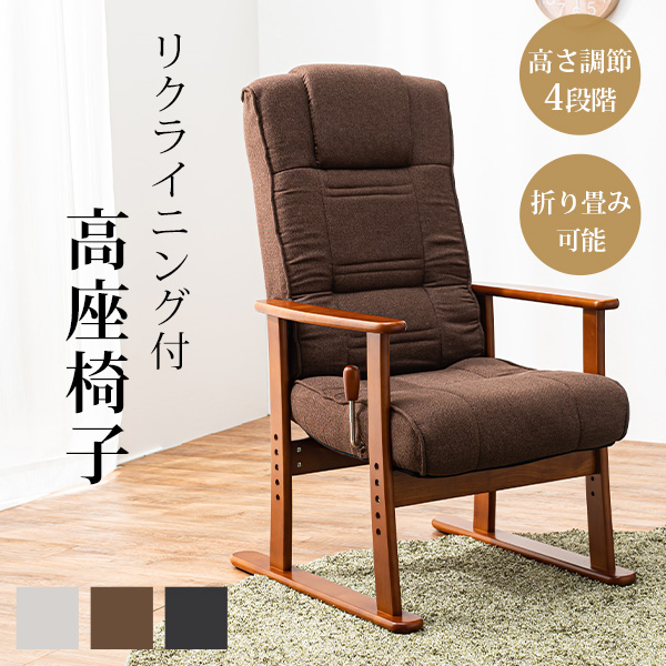 ■高座椅子 リクライニング 座椅子 折りたたみ 高さ調節 一人用 ハイバック 肘付き チェア 椅子 シニア 介護 高齢者 高座椅子 リクライニン