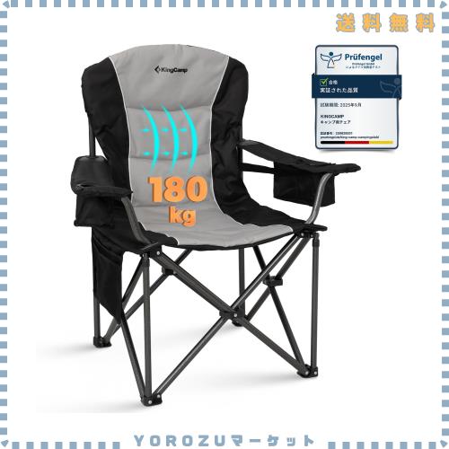 ■KingCamp キャンプ チェア ハイバック 幅96cm 頑丈 耐荷重180kg コットン入り 保冷バック付き 折りたたみ椅子 アウトドア 釣り 運動会