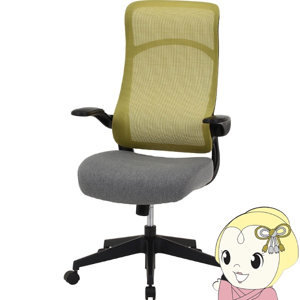 ■オフィスチェア ガス圧昇降式 ハイバック アームアップ コンパクト 回転式 デスクチェア パソコンチェア 事務用 学習イス カーキ