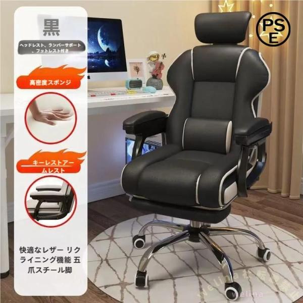 ■ゲーミングチェア リクライニング 肉厚座面 ハイバック Welina 360度回転 昇降 人間工学 事務椅子 在宅ワーク 勉強 仕事