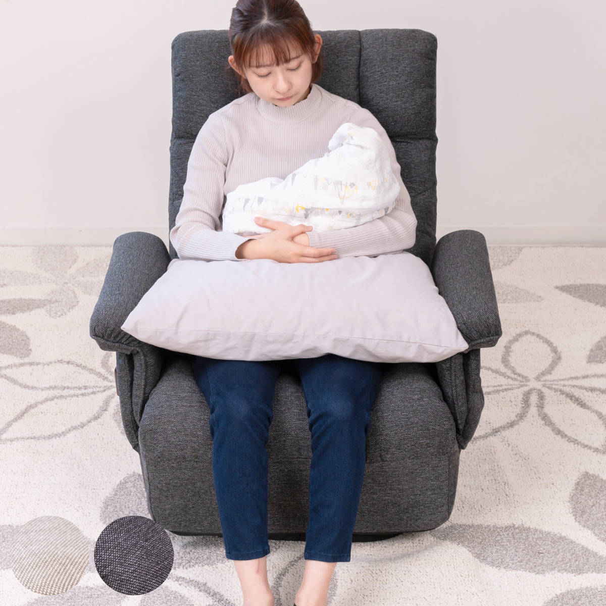 【素材】 張地:ポリエステル100% 肘部分:天然木 座面:金属(スチール)クッション材(ウレタンフォーム) 塗装:ラッカー塗装 製造:中国【生産】中国製【製品】お客様組み立て品【サイズ】約:幅60x奥行61-93cm 約:高さ92-100cm 約:座面35/39/43cm【重量】約9.7kg【機能】 座面ポケットコイル レバー式リクライニング 背部:8段ギア 頭:5段ギア▼この商品についてご高齢の方や足のお悩みをお持ちの方、立ち座りを楽にしたい方におすすめです。 ・手元のレバーで座ったまま背もたれのリクライニング(8段階)。 ・座面高は調整が3段階で可能(35/29/43cm)。・ポケットコイルを採用している為、長時間でも疲れにくい。へたりにくく長持ちします。・木製の肘掛けは角がなくなめらかな作り。立ち上がる際も楽に掴めます。・組立工具が付属しており、簡単に組み立てられます。