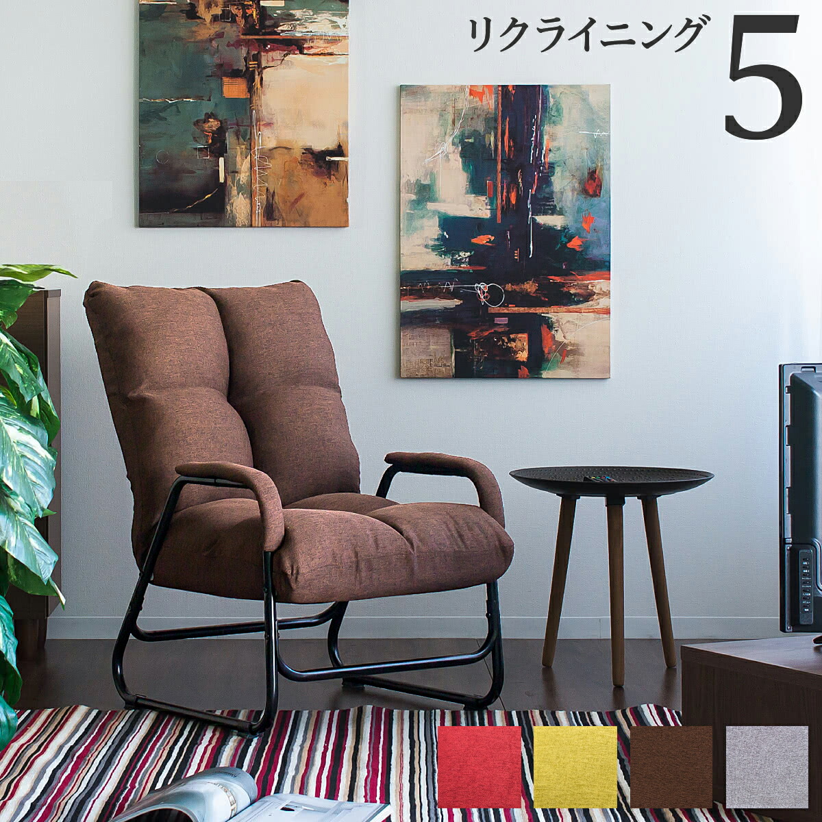 ■座椅子 リクライニングチェア 高座椅子 一人掛け ソファチェア 赤 ブラウン 黄 グレー コンパクト 肘掛け 腰痛 ハイバック 折りたたみ 一