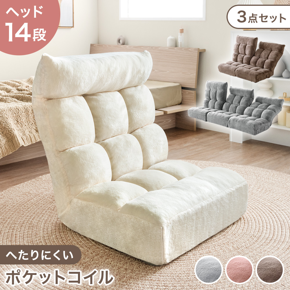 へたりにくい ポケットコイル 座椅子 ヘッドギア 1人掛け 一人暮らし 1P 1人 持ち運び もこもこ ふわふわ 可愛い 折り畳み チェア リラックスチェア アイボリー ピンク グレー グレージュ【商品番号:99901014】