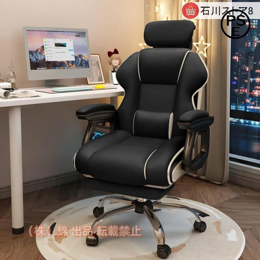 ■社長椅子 ゲーミングチェア デスクチェア 360度回転昇降機能 リクライニングチェア 肉厚座面 事務椅子 錦ブラック ハイバック 人間工学