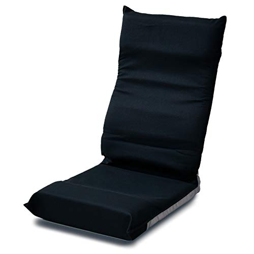 ■[山善] 座椅子 コンパクト (幅43*) リクライニング ハイバック 折りたたみ お尻がズレにくい 背もたれカーブ (腰サポート) ブラック IHZ-