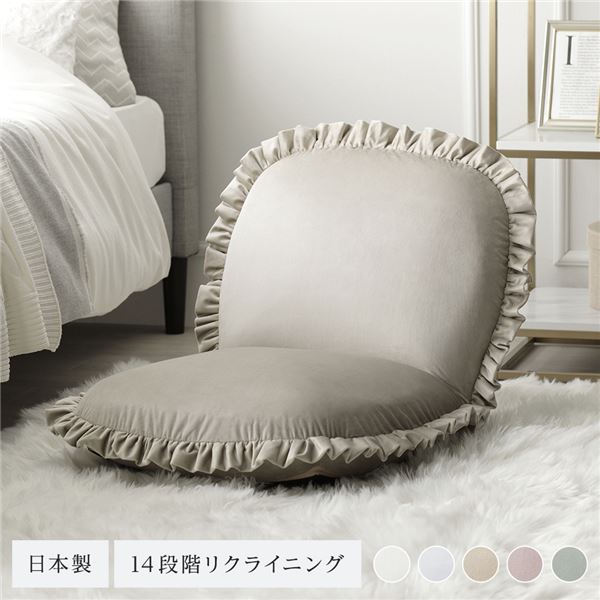 ■座椅子 (イス チェア) ベージュ リクライニング 日本製 国産 コンパクト フリル付き ニュアンスカラー フロアソファ 低い フロアタイプ