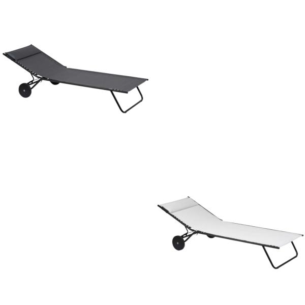 【商品説明】ビーチベッドMiamiは機能性に優れたシート地、耐久性・耐腐食フレーム、移動に便利な2個のキャスターを備え、特にプールサイドなどの屋外に適しています。特長: 固めのサポートで背中をしっかりと支えます。容易にシート布地の取り付け・取り外しができ、変形もなく、わずかな石鹸水で拭くだけで十分なのでお手入れもとても簡単です。 背もたれはサンベッドとして完全に横にした状態を含めて3段階の調節ができます。 シート地 Batyline〓 Duo強化織りは、紫外線に強く水分を吸収しない透かし織りなのでプールサイドに最適です。 持ち運びが簡単: Miamiにはキャスターが付いているので簡単に移動できます。 カラー:ダークグレー/ホワイト サイズ:使用時:W77×D199×H32-81cm/収納時:W77×D52×H165cm 重量:約9.3kg,耐荷重140kgまで 素材:フレーム:スチール、シート:ポリエステル ※メーカーよりお取り寄せ対応となっております。在庫がない場合もございますので予めご了承くださいませ。 在庫がある場合はメーカーより直送させて頂きます。 ※北海道、沖縄、離島