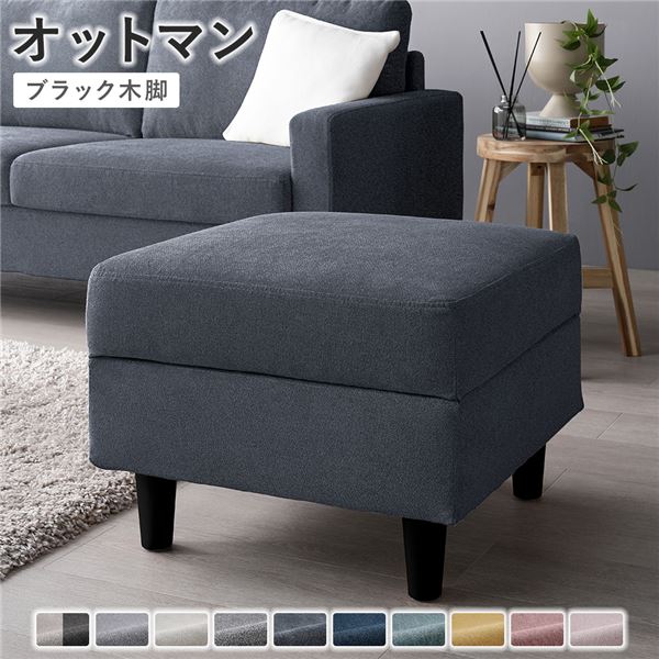 ■オットマン 〔 カバー:ナイトグレー 脚:ブラック 〕 幅54cm 洗える ウォッシャブル カバー 収納付き スツール 足置き リビング家具 イ