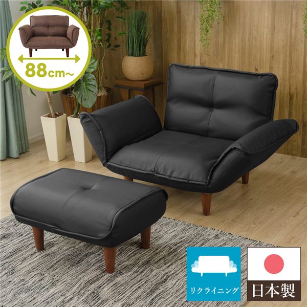 コンパクト 国産のカウチソファ 脚を外せばローソファに!リビングソファー おしゃれ スリム 国産 樹脂脚 足付き 脚付き リビング ダイニング プレゼント ギフト 引っ越しコンパクトな国産 日本製 カウチソファ 脚を外せばローソファ 低い フロアタイプ ロータイプ フロアソファ に変身 1人掛けのリクライニングソファー オットマン 足置き も付いている 高品質なPVC生地を使用 ブラックの色合いがスタイリッシュ 幅88cmのコンパクトサイズ 脚部はブラウンで統一されたデザイン 快適な座り心地と使い勝手の良さを兼ね備えたおしゃれなソファ 黒 茶 日本製 国産 リクライニングソファー/ローソファ 低い フロアタイプ ロータイプ フロアソファ ー 【1人掛け オットマン 足置き 付き PVC生地 ブラック】 脚部:ブラウン 幅88cm 脚付き 黒 茶◇関連: 生活用品/インテリア/雑貨/インテリア/家具/ソファ/ソファセット (キーワード: 高級 豪華 流行 くつろぎ 安らぎ リラックス ソファ ソファー リビング 応接 応接間 セット 応接セット リビングセット ソファセット TCC524