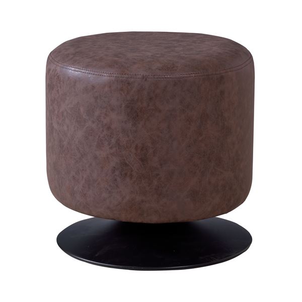 ■オットマン 直径40cm ブラウン ソフトレザー スチールフレーム 回転式 ラウンド スツール リビング ダイニング インテリア家具