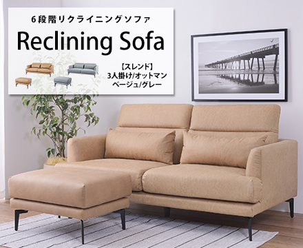 スレンド【SLEND】6段階リクライニングソファ オットマン グレー