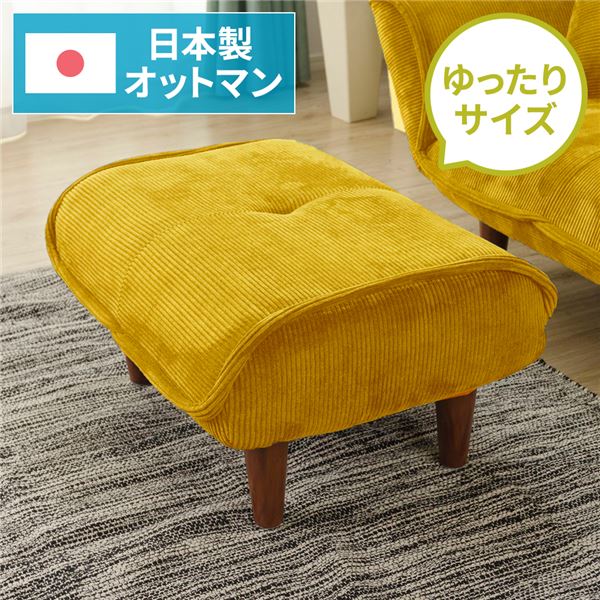 ■日本製 シンプル オットマン/スツール 〔コールテン生地 イエロー〕 脚部:ブラウン 幅59cm ゆったりサイズ 【北海道・沖縄・離島配送不