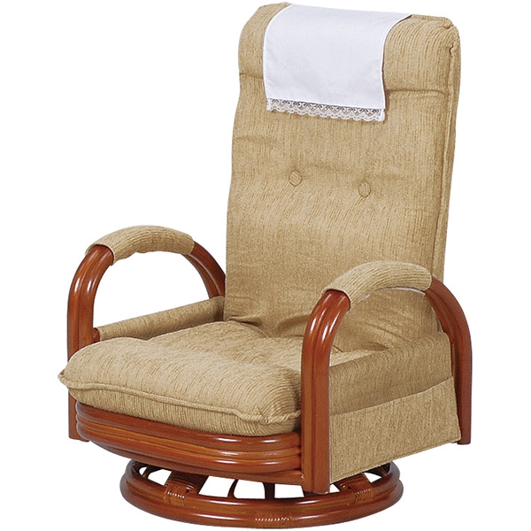 ■座椅子 回転式 リクライニング 通販 RZ-972-Hi-LBR 回転座椅子 肘付き 座いす 肘掛け リクライニングチェア 回転いす ハイバック ロータ