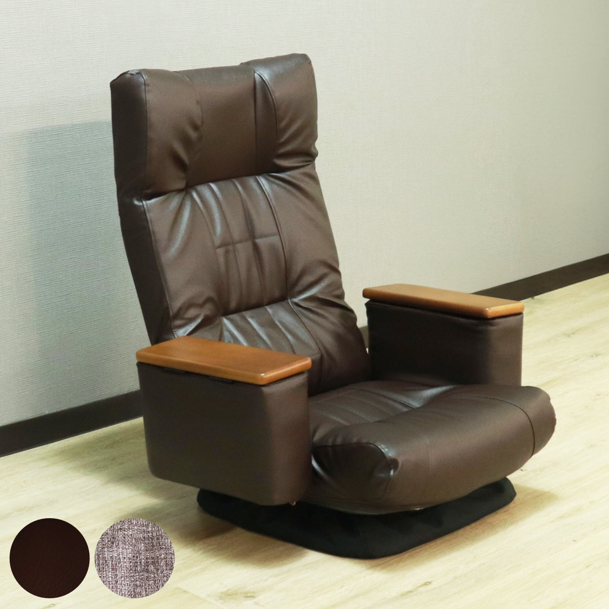 ■座椅子 回転式 リクライニング 通販 RZ-974-Hi-LBR 回転座椅子 肘付き 座いす 肘掛け リクライニングチェア 回転いす ハイバック ハイタ