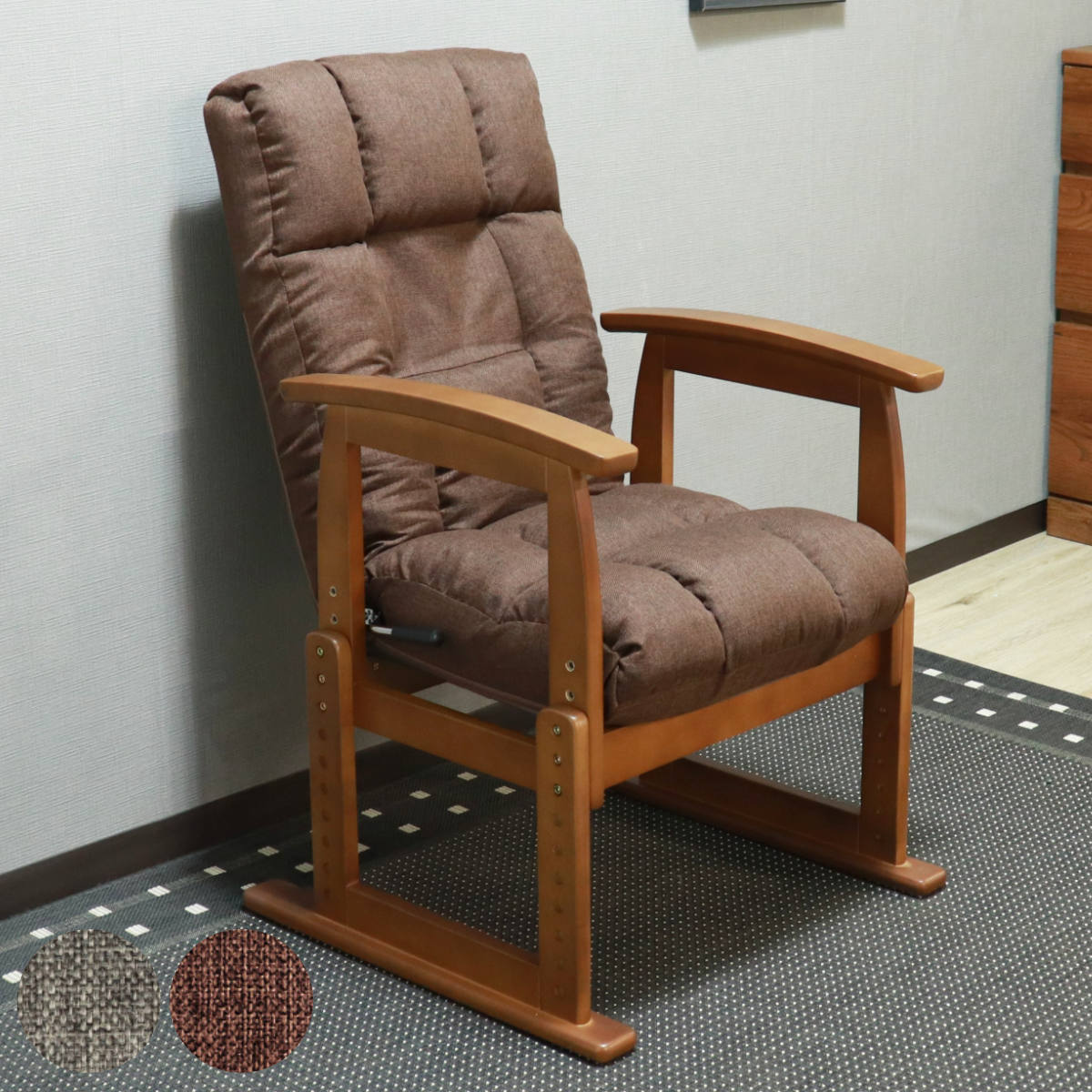 ■高座椅子 木肘 7段階リクライニング 2WAY ( 座いす 座イス チェア フロアチェア 1人掛け 高さ調節 肘付き ファブリック 布 レバー式 リ