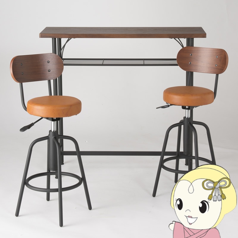 ■カンターテーブルセット チェア2脚 3点 セット テーブル 椅子 カウンター チェア バー ダイニング レトロ キャメル