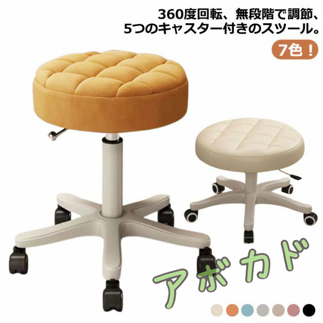 7色 スツール キャスター付き 丸椅子 ラウンドスツール 高さ35?45cm 昇降式 高さ調節可能 回転椅子 PU ハイチェア 椅子 イス カウンターチェア エステスツール ネイル サロン 美容室 カットチェア 施術 診察 作業スツール オフィス テレワーク