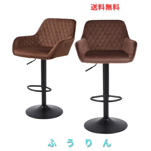 ■Youhauchair カウンターチェア ベルベット生地 高さ調節可能 回転式バーチェア 背もたれ 肘掛け付き 足置き ハイチェア バー、カウンター