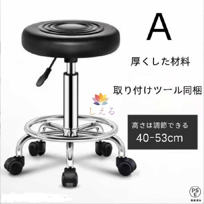 ■スツール 丸椅子 キャスター付き ハイスツール 椅子 昇降椅子 40-53cm キッチン カウンター バー チェア チェアー サロン オフィス 足