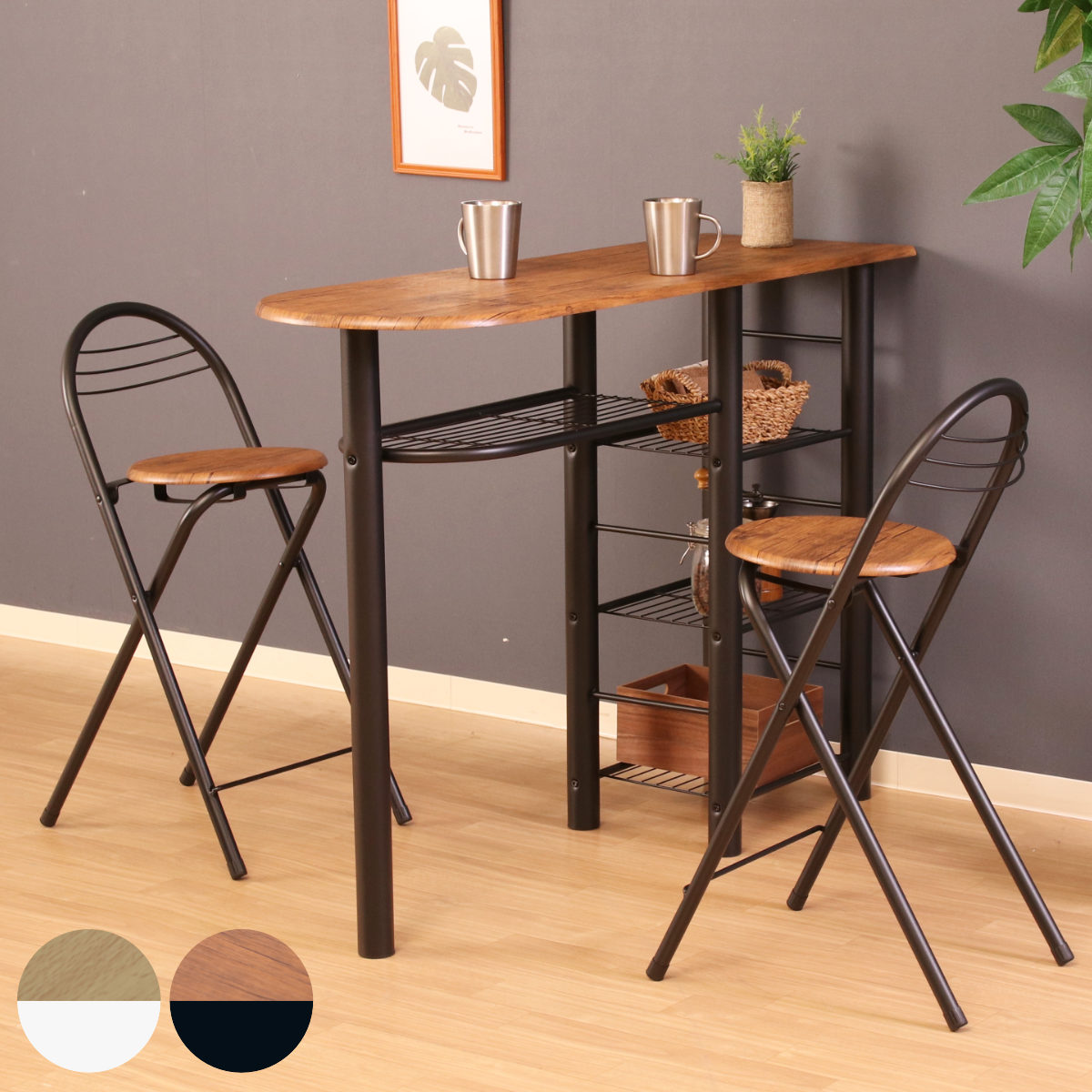 ■カウンターテーブル 3点セット 棚付 テーブル×1 チェア×2 ( キッチンカウンター 収納 ラック バーカウンター カウンター ハイテーブル